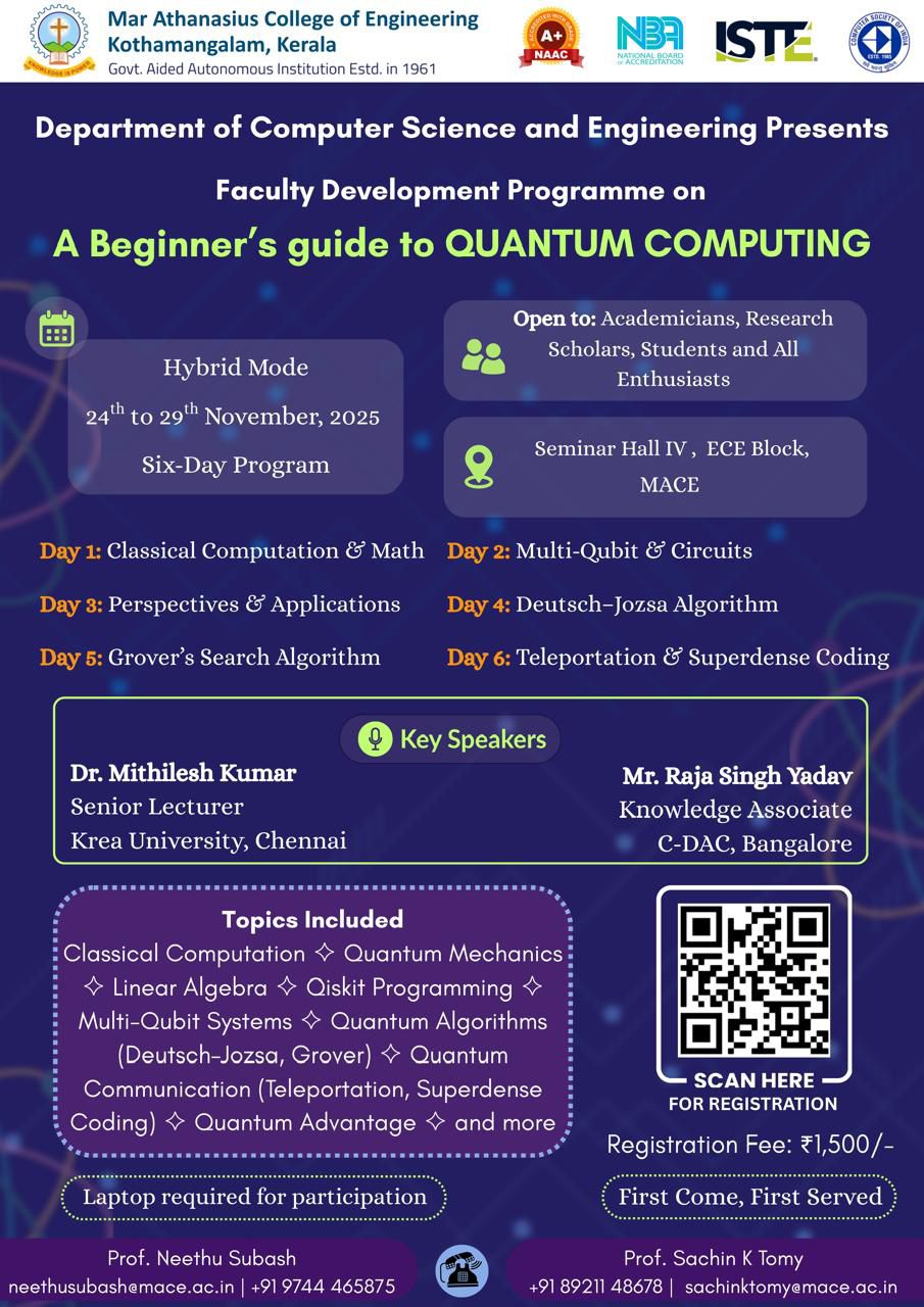 As part of the Quantum Outreach Program, a Faculty Development Program (FDP) will be conducted on the theme “Introduction to Quantum Computing“.