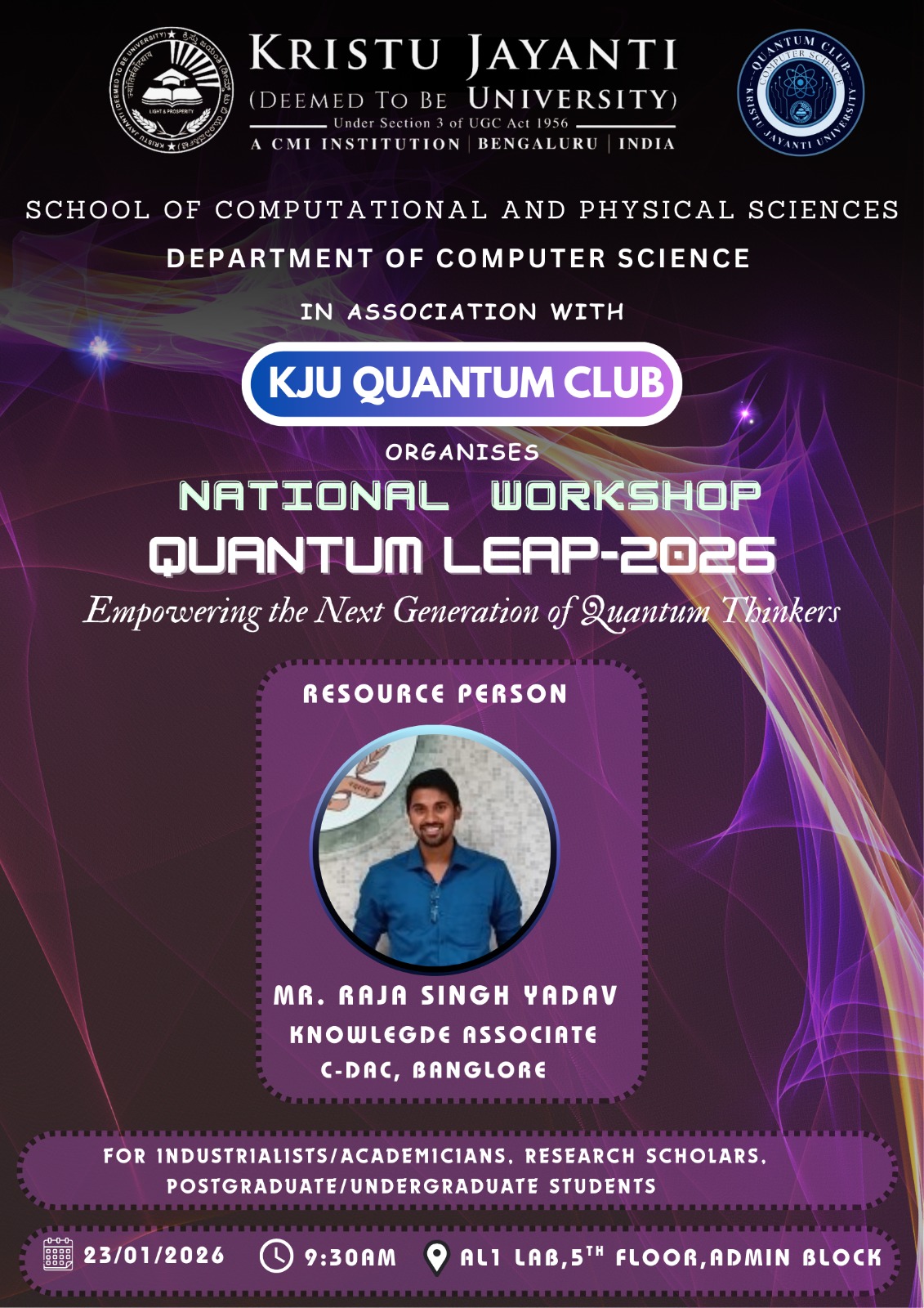 As part of the Quantum Outreach Program, a National workshop was conducted by Kristu Jayanti College on the topic of Quantum Computing.